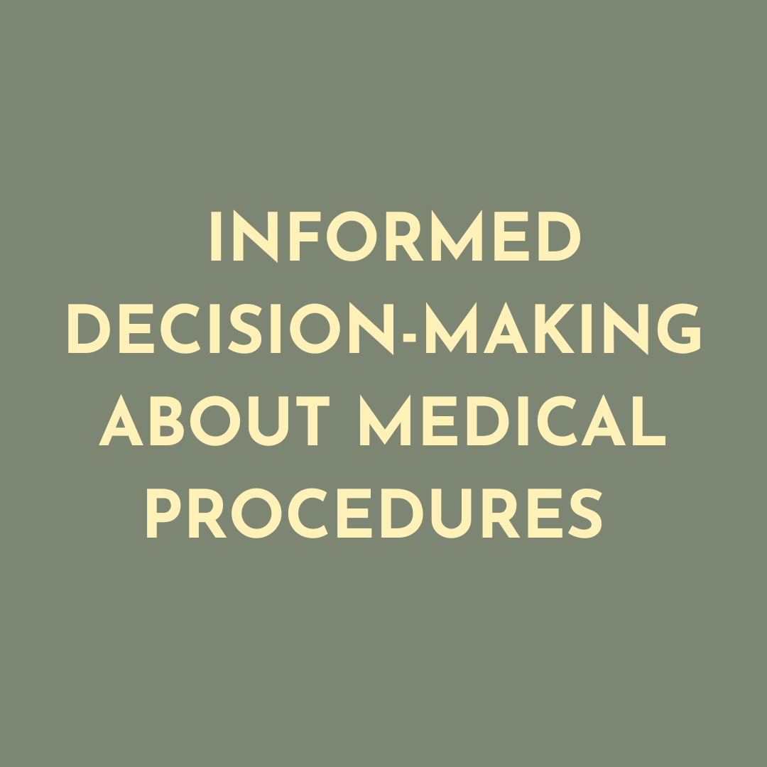 For each procedure, we explore: what it is and why it’s recommended; the potential risks and benefits; alternatives that may better align with your values and preferences.